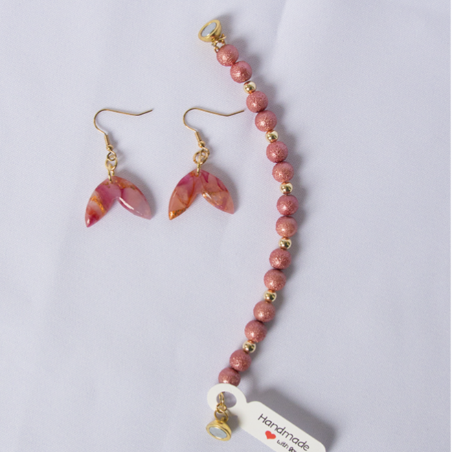 Een elegante armband in een warm zalmroze kleur, afgewisseld met goudkleur. De armband sluit met een magneet, dat is handig.Let op deze armband is niet van edelsteenkralen gemaakt.