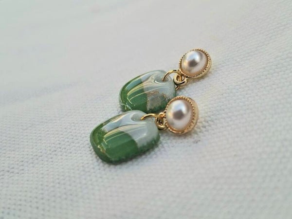 Frisgroene hanger aan een zacht glanzende parel. Voor als je houdt van contrast.