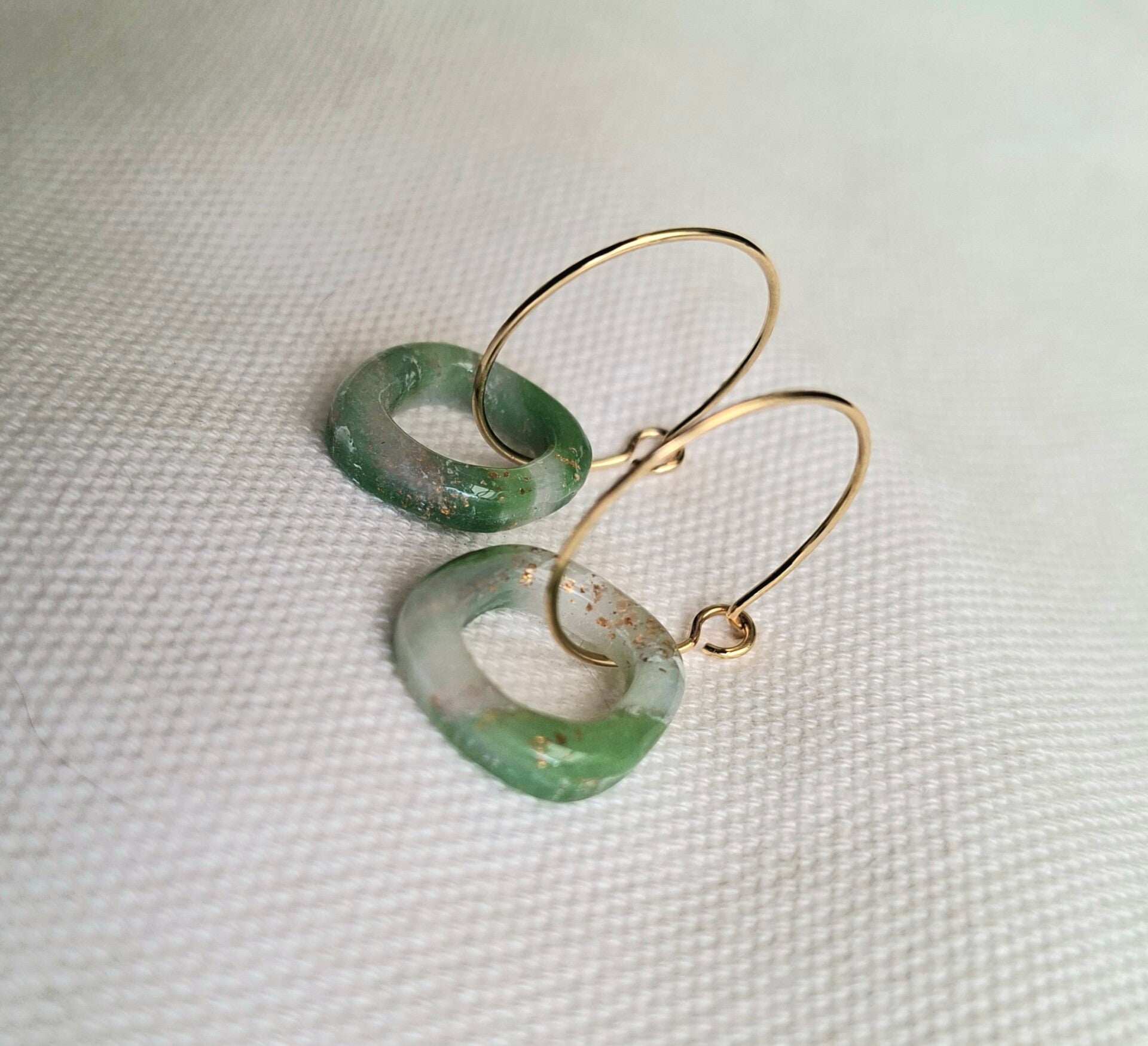 Kleinere creolen met een niet-perfect ronde hanger — organisch, licht, stijlvol.