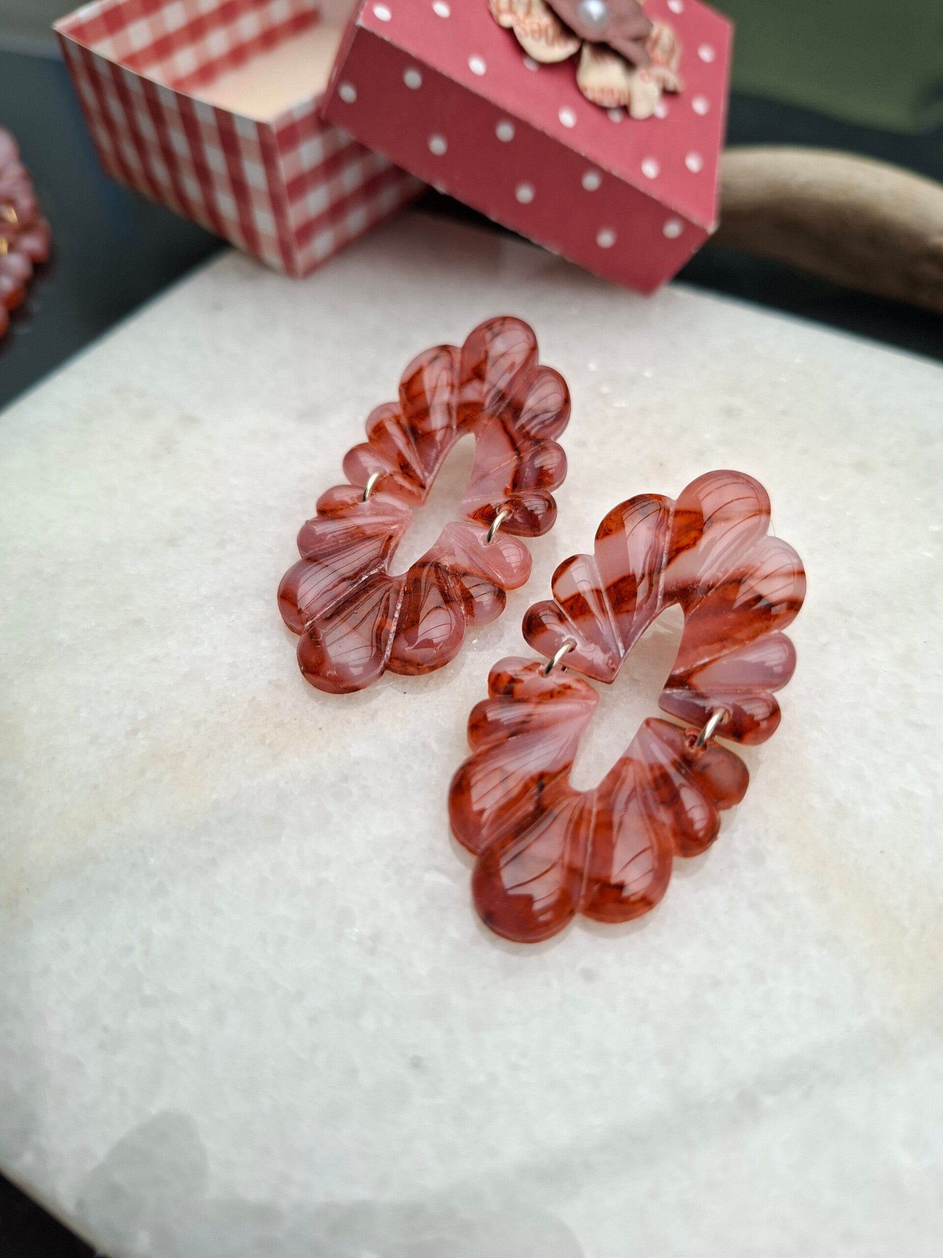 Op zoek naar een oorbel die gezien mag worden? Deze grote statement oorbel bestaat uit twee smalle regenbogen, speels aan elkaar verbonden met ringetjes. Het gemarmerde steenrood gecombineerd met transparantie maakt ‘m krachtig én warm – precies wat je nodig hebt om je herfstoutfit naar een hoger niveau te tillen. Perfect bij een zwarte coltrui of wollen jurk.