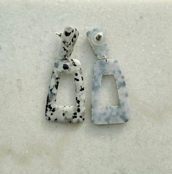 Stoer en speels tegelijk. Deze polymeerklei oorbellen, in de kleursamenstelling lijkend op de Zebra Jasper minerale steen, trekken de aandacht zonder te schreeuwen.