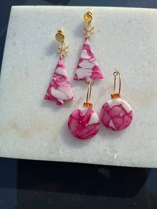Een knipoog naar kerst, zonder glitteroverdaad. Een gestileerde kerstboom met strass ster bovenaan die het geheel maakt het af. In de kleuren roze en parelmoer oer wit.